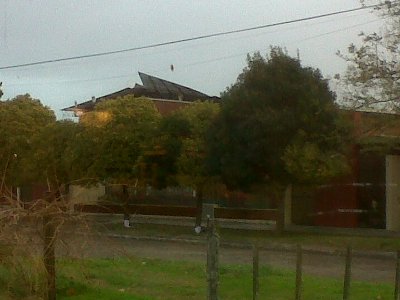 Así se veía el techo de la Escuela Nº 42 en el momento en que el temporal de viento azotaba nuestra localidad. El fuerte viento de ayer por la tarde, dejó su saldo en la Escuela Nº 42. El techo del frente era levantado, pero gracias al aviso de Alejandro Dialeva y de la pronta