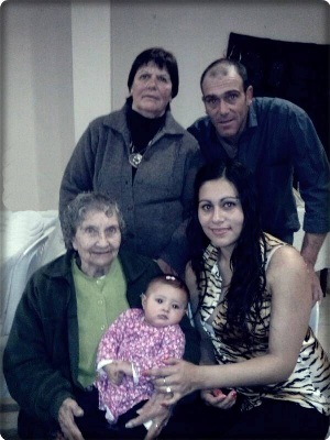 La abuela Fanny nos regala esta foto junto a su hija Sara, su nieto Silvio, su bisnieta Agustina y su tataranieta Ailén.