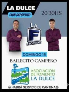 El domingo 15 a partir de las 20.30 Los Echemendy, en el Club Deportivo La Dulce presentan su espectáculo «Bailecito Campero», organizado por la Asociación de Fomento La Dulce.