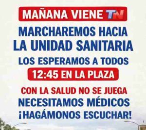 Se convoca a todos los vecinos de La Dulce y la zona a marchar por la salud en el interior del distrito